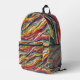 This is a Habatour Creations backpack, decorated with an authentic modern abstract geometric digital pattern design with wavy lines.