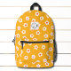 La mochila corporativa con el logotipo "Adición floral amarillo" moderno y moderno presenta un diseño floral moderno en blanco, rosa y naranja con un fondo amarillo y un logotipo de negocios personalizado. Perfecto para regalos corporativos, escuela, deportes, gimnasia, viajes y más. Diseñado por ©2024 Evco Studio www.zazzle.com/store/evcostudio