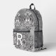 Mochila Impresa Monogram "R" Floral Tattoo Pattern Black White DIY