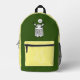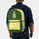 Mochila de color verde oliva y neutro limón con personalizado monstruo de anime lindo y buenas iniciales de monograma personalizables. Perfecto para la escuela o la universidad. Minimalista, fresco y sofisticado.