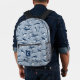 Mochila Impresa Monograma azul del patrón de tiburón asustado