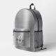 Esta mochila personalizada presenta un monograma y un nombre en un guión moderno en blanco y negro sobre un elegante fondo metalizado de imitación plateado.