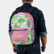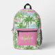 Mochila Impresa Monograma de palmeras tropicales verde y rosa prec