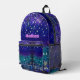 Mochila Impresa Monograma de purpurina oscuro morado y turquesa