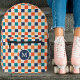 Esta divertida y elegante mochila personalizada presenta un patrón de tablero de ajedrez en tonos retro de azul marino, rojo naranja brillante, naranja claro / amarillo, verde turquesa y crema. Se incluye una plantilla de texto con la inicial del monograma - utilízala para personalizar tu mochila o elimínala y el círculo, si prefieres no tener monograma. Esta linda y colorida mochila es perfecta para el regreso a clases. *Arte original de Tracey Khalei / Orabella Prints.