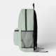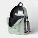 Esta mochila personalizada presenta un monograma y un nombre en un guión moderno en blanco y negro sobre un fondo verde sabio de moda.