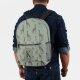 En esta elegante mochila hay jirafas purpurinoso doradas en un patrón repetido en un atardecer verde sabio para pop extra. Moda con vibraciones modernas. Se puede personalizar con una letra en el medio en una esfera verde en el bolsillo delantero
