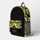 Mochila impresa en un monograma moderno con un diseño personalizado sobre un fondo de piel de animal negro y amarillo impreso para un aspecto profesional limpio. ¡Puedes hacerlo más personalizado subiendo tu propio logo, imagen o motivo! El nombre de monograma personalizado en la tipografía de bloques modernos de oro puede ser reemplazado por su propio nombre o texto personalizado. ¡El regalo o accesorio perfecto!