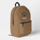 Mochila impresa en minimalista Impresión de pescado Monograma moderno Mochila impresa Un diseño a medida sobre un fondo marrón minimalista con un ilustracion de pescado para un aspecto profesional limpio. ¡Puedes reemplazar fácilmente el ilustracion subiendo tu propio logo, imagen o motivo! El nombre de monograma personalizado en la tipografía blanca moderna de bloques puede ser reemplazado por su propio nombre o texto personalizado. ¡El regalo o accesorio perfecto!