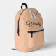 Mochila monograma personalizada diseñada en un estilo moderno y elegante. Esta elegante mochila Deep Peach presenta una 'W' inicial en blanco y negrita con una sombra en negro y un nombre de personalizable con letra de guión negro. Perfecto para añadir un toque de sofisticación y personalización a su estilo cotidiano. Ideal para salidas escolares, laborales o casuales, esta mochila combina funcionalidad con un diseño de moda que destaca.