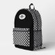 La mochila impresa negra monograma bajo control es perfecta para la escuela de trabajo y en marcha. Personalice fácilmente con sus iniciales y cambie los colores de fondo a lo que desee.