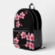 Mochila Impresa Monograma negro rosado con flores de cerezo