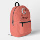 Mochila monograma personalizada diseñada en un estilo moderno y elegante. Esta elegante mochila de Salmon presenta una 'G' inicial en blanco y negrita con una sombra en negro y un nombre de personalizable con letra de escritura negra. Perfecto para añadir un toque de sofisticación y personalización a su estilo cotidiano. Ideal para salidas escolares, laborales o casuales, esta mochila combina funcionalidad con un diseño de moda que destaca.