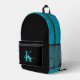 Esta sencilla y elegante mochila negra con tu primer nombre en una letra de guión de moda en blanco y tu primera versión inicial en una moderna letra de tope en verde azulado es perfecta para ti. Es de diseño y a la vez muy clásico. Será fabuloso para la escuela, el gimnasio, salidas, excursiones, compras, ciclismo, etc.