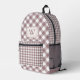 Mochila Impresa Monograma Vintage Rosa Gingham Farmhouse estilo