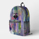 Mochila impresa en forma de baloncesto con un monograma de arte moderno púrpura Mochila de diseño a medida con un ilustracion de remo de bolas de picnic para un aspecto profesional y limpio. ¡Puedes reemplazar fácilmente el ilustracion subiendo tu propio logo, imagen o motivo! El nombre de monograma personalizado en la tipografía de bloques modernos negros puede ser reemplazado por su propio nombre o texto personalizado. ¡El regalo o accesorio perfecto!