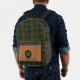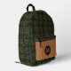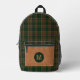 Mochila de aspecto rústico realizada en el tracto de tracto escocés Fitzsimmons, de color verde y canto. Gráficos de un patrón de cuero marrón, cubre el área de bolsillo. Personalice el monograma de una letra, fijado en una placa circular, para que se ajuste a sus necesidades. Ideal para la escuela, el trabajo, los viajes y más.