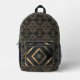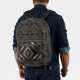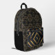 Negro elegante y moderno con formas doradas monogramadas mochila.