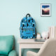 A los fanáticos de los pies de página les encantará esta mochila con motivos frescos. Está impreso con un patrón de Bigfoots escondiéndose entre árboles forestales y montañas, en colores azules, negros y blancos. Hay texto personalizable en el bolsillo delantero para que añada su nombre o mensaje