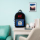 Monograma con una o dos iniciales en un tipo de letra rojo fresco contra un sólido fondo negro de mala calidad Diversión dichos motivacionales en la tipografía colorísima Be Happy, Love, Smile, Do Your Best, Peace, etc. contra el fondo blanco dentro del círculo blanco delineado y cuadrado. Techo azul sólido. La polka blanca geométrica se fija en los lados y en el fondo. Diseño original © TamiraZDesigns.