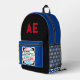 Mochila Impresa Motivación de puntos de polka blanco azul monogram