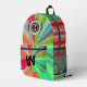 Los audífonos rodean una mandala con capas de temas musicales que incluyen guitarra y partitura estándar, un ecualizador, ondas sonoras y un registro titulado "Música de la vida". Ya sea que toques música por ti mismo o que simplemente disfrutes escuchando, este diseño te anima a "tocarlo". Personalizar la primera vez en la bolsa delantera de esta mochila con su propio monograma para hacer este accesorio único suyo.