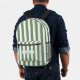 Backpack in natural forest color. Fir green stripes on a white background and space for your name on the front pocket. For a forest feel all day long.