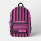 Mochila impresa con tiras de nombre personal Neon Pink y Black Vintage Striped