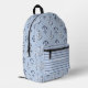 Anclajes náuticos azul marino y blanco sobre fondo azul claro. El bolsillo delantero tiene rayas azul marino y un lugar perfecto para personalizar.