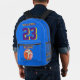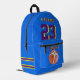 Mochila impresa para niños deportivos personalizados. Monograma morado y amarillo: patrón gris etiqueta de equipaje negro. Elegante sencillo, sencillo y moderno diseño de chicas y niños azul, con texto personalizado y monograma, con baloncesto, regalo perfecto para viajeros, deportes escolares y otros