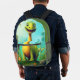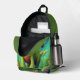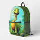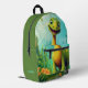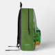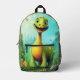 Niños monogramas de dinosaurio lindo Mochila impresa Un lindo dinosaurio sobre un fondo verde del bosque. El nombre de monograma personalizado se encuentra en el lateral y puede ser reemplazado por su propio nombre o texto personalizado. El regalo o accesorio perfecto para cualquier niño.