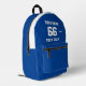 Crea tu propia mochila impresa con estilo de fútbol deportivo azul personalizado con nombre, número, nombre del equipo, lema y año. Personalice esta sencilla y clásica plantilla de mochila impresa con su mensaje personalizado, nombre, nombre del equipo y año. Fácilmente lo personaliza para un deporte fresco. Crea tu regalo personalizado único para entrenador, cumpleaños de niño, futbolista, compañeros de equipo y amigos.