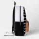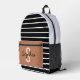 Mochila elegante rayada en blanco y negro con un bolsillo delantero caramelo con un nombre personalizado y inicial. Perfecto para la escuela, el viaje o el uso diario.