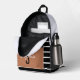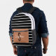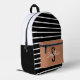 Mochila elegante rayada en blanco y negro con un bolsillo delantero caramelo con un nombre personalizado y inicial. Perfecto para la escuela, el viaje o el uso diario.