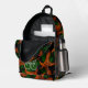 Esta fresca mochila de baloncesto presenta un patrón aleatorio de baloncesto de tamaño variado girado de todas formas en un fondo negro - cada una de las pelotas de baloncesto en el patrón tiene dos paneles coloreados—uno verde y otro negro - personalizar con el nombre y número jersey del atleta - de katz_d_zynes