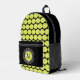 Diseño de mochila linda con dos líneas de texto personalizable para "PICKLEBALL STAR - DILL WITH IT" o un dicho personalizado y nombre o texto personalizado en una fuente moderna atemporal arqueada sobre y debajo de una imagen de una pelota de pickleball en verde claro y colorido. El fondo en la parte delantera y laterales es negro clásico. Agrega una o dos iniciales en el centro del diseño sobre la imagen de la pelota. Las combinaciones de iniciales más grandes pueden necesitar ser reducidas de tamaño para el espaciado. TODOS los colores en este diseño son personalizables, incluyendo los agujeros en la pelota. Contáctame para preguntas o solicitudes de color personalizado.