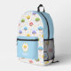 Las mochilas de nombre personalizado Personalizado de niños de hongos cutáneos muestran su nombre personalizado, monograma o iniciales en una simple tipografía de escritura en un lindo, divertido y colorido patrón de personalizado de hongos en morado, rojo, verde, amarillo y azul. Perfecto para los niños de vuelta a la escuela, cumpleaños, Navidades y vacaciones. Diseñado por ©Evco Studio www.zazzle.com/store/evcostudio