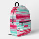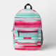 Las mochilas de nombre personalizado del patrón de rayas de color azul ciego moderno presentan su nombre personalizado, monograma o iniciales en una simple tipografía de escritura en un fondo moderno de banda de color cian y mageneta. Perfecto para volver a la escuela, deportes, gimnasia y más. Diseñado por ©Evco Studio www.zazzle.com/store/evcostudio