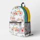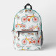 Mochila impresa blanca con un moderno patrón de bicicleta con un nombre personalizado. Espero que te guste este diseño.