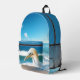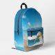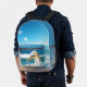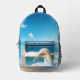 Bring the serene beauty of the shoreline wherever you go. This custom backpack features an image of a majestic Northern Gannet set against a breathtaking tropical beach backdrop. Or, if you prefer: your custom photo. With its bright blue skies and crashing white waves, this design is perfect for bird watchers, nature lovers, and anyone who feels at home by the sea.