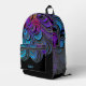 Mochila Impresa Olas flotantes de azul, púrpura y gris sobre negro