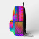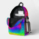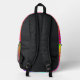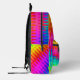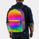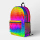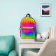 Un colorido patrón abstracto de líneas onduladas en colores arcoiris sobre una mochila de impresión en todas partes. Ajuste el tamaño del patrón y la dirección de cada panel para que esta bolsa sea única. Personalice con cualquier texto si lo desea. Excelente para la escuela, los viajes y más. ¡Es un divertido diseño de arte digital para cualquiera a quien le gusten los colores brillantes!