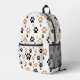 Cute playful minimalist pattern of orange and black pawprints and scattered orange paint speckles. Personalize the with monogram with your own initial to make this a fun charming backpack for all kids, students and adults alike.