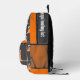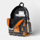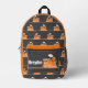 Orange puffing steam train boys backpack. Personalize with your child's name, perfect for library or school. Currently reads Braydon and Braydon on boiler plate plus Braydon - Super Ferroequinologist along the top flap, add your own name maybe your family name class and own message. Part of the kids graphic steam train range. Background color can also be changed to your own color choice currently in dark gray. A perfect gift for boys to take to school or as a gift to a train or railway transport fan. Original steam train graphic art and design by Sarah Trett exclusively for www.mylittleeden.com on zazzle.