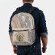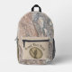 Añada un toque de su amor por los pájaros a sus salidas y viaje con esta orgullosa mochila nerd de pájaro con una silueta de pájaro marrón con una foto de corteza de árbol. "Orgulloso Nerd de pájaro" aparece encima de la imagen de pájaro y se puede personalizar fácilmente. Diseño original - C. McGouldrick