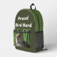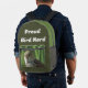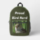 Esta mochila muestra una foto de un pequeño gorrión mirando al mundo. El cuerpo principal de esta mochila muestra un color verde que se puede personalizar fácilmente. "Nerd de pájaro" también puede ser personalizado si lo desea. Diseño original - C. McGouldrick