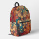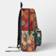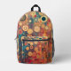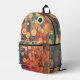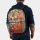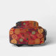 Medallones, círculos, mandalas y pendantes están suspendidos de delgadas líneas doradas o flotando libremente sobre un fondo azul, dorado y rojo. Bonito y lujoso diseño, al estilo de Gustav Klimt.