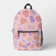 Mochila Impresa Oso de peluche y patrón cardíaco púrpura dulce