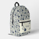 Esta mochila estampada es perfecta para los jugadores de banjo y para todo aquel que ame la música bluegrass. Tiene un patrón de estilo de arte folclórico con ilustraciones de banjos, pájaros, lunas, estrellas y acentos botánicos todo en azul marino ambientado con un fondo de color crema o marfil. El bolsillo delantero tiene un punto para añadir un nombre u otro texto.