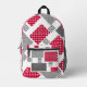 Mochila Impresa parche gris rojo de lunares sobre fondo blanco